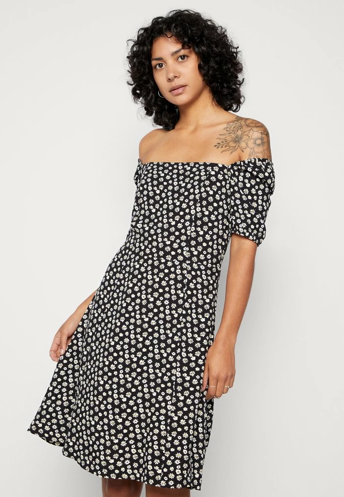 - Neckline: Off-the-shoulder